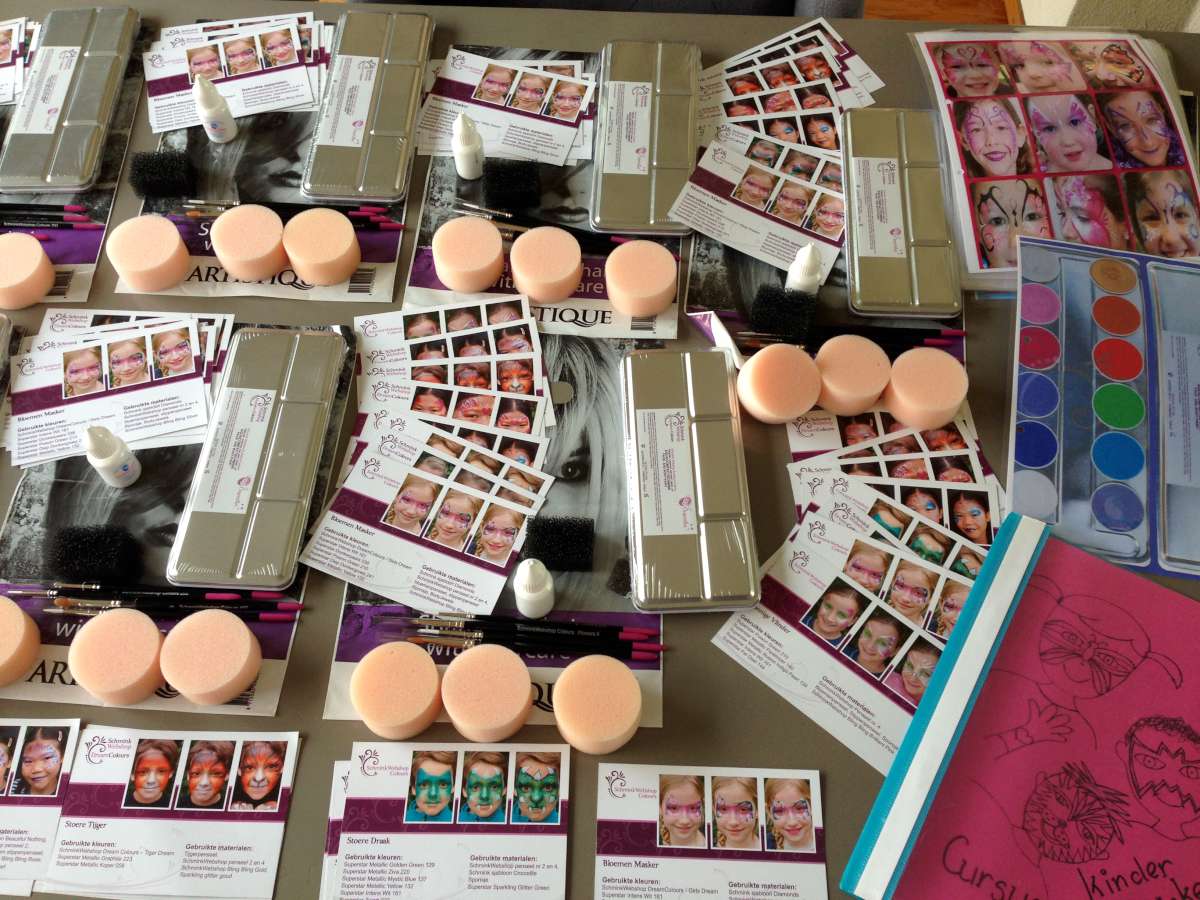 Voor de cursus heb je een pakket nodig met schmink, penselen en sponsjes (€75). Dit blijft van jou en is een goede start om zelf verder te oefenen.