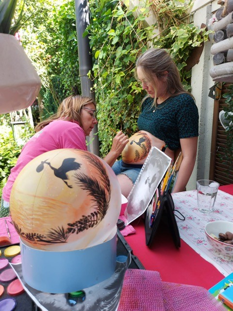 Tijdens het schilderen zit je meestal ontspannen, met natuurlijk ruimte voor pauzes.